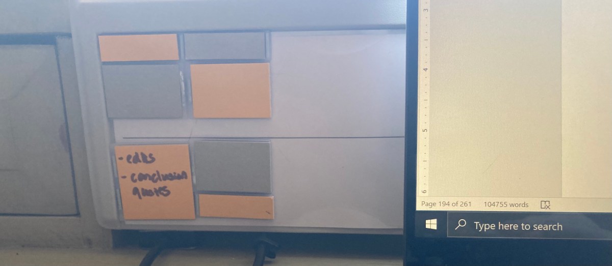 I’m a fan of having notes in front of me to remind me what to focus on. Some of them are on a bulletin board. Others are on a dry erase board. Still more are on sticky notes. (I have a lot of notes.) They get moved around depending on how important they are, with the most urgent peering at me from around my laptop screen.